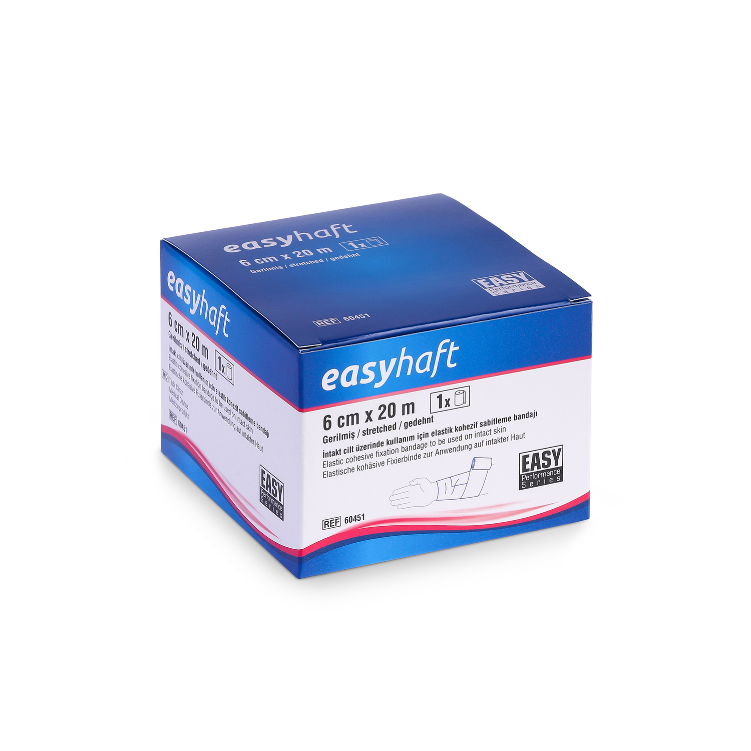 EASYHAFT; açık gözlü özel dokuma yapısı sayesinde cildin nefes almasını sağlayan, yüksek esnekliğe sahip, kendi üzerine yapışan gözenekli bir bandajdır. Yüksek gerdirme direnci ve kayma yapmayan dokusuyla; alçı atellerinden yara pansumanlarına, eklem bandajlarından dolgu malzemelerine kadar her türlü sabitleme (fiksasyon) işleminde güvenle kullanılır. Sadece kendi üzerine yapışma özelliği sayesinde cilde veya kıllara yapışmaz, çıkarılırken acı vermez ve cilde dosttur.